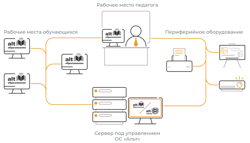 - Содержит ПО для интеграции рабочих мест учащихся и преподавателя.